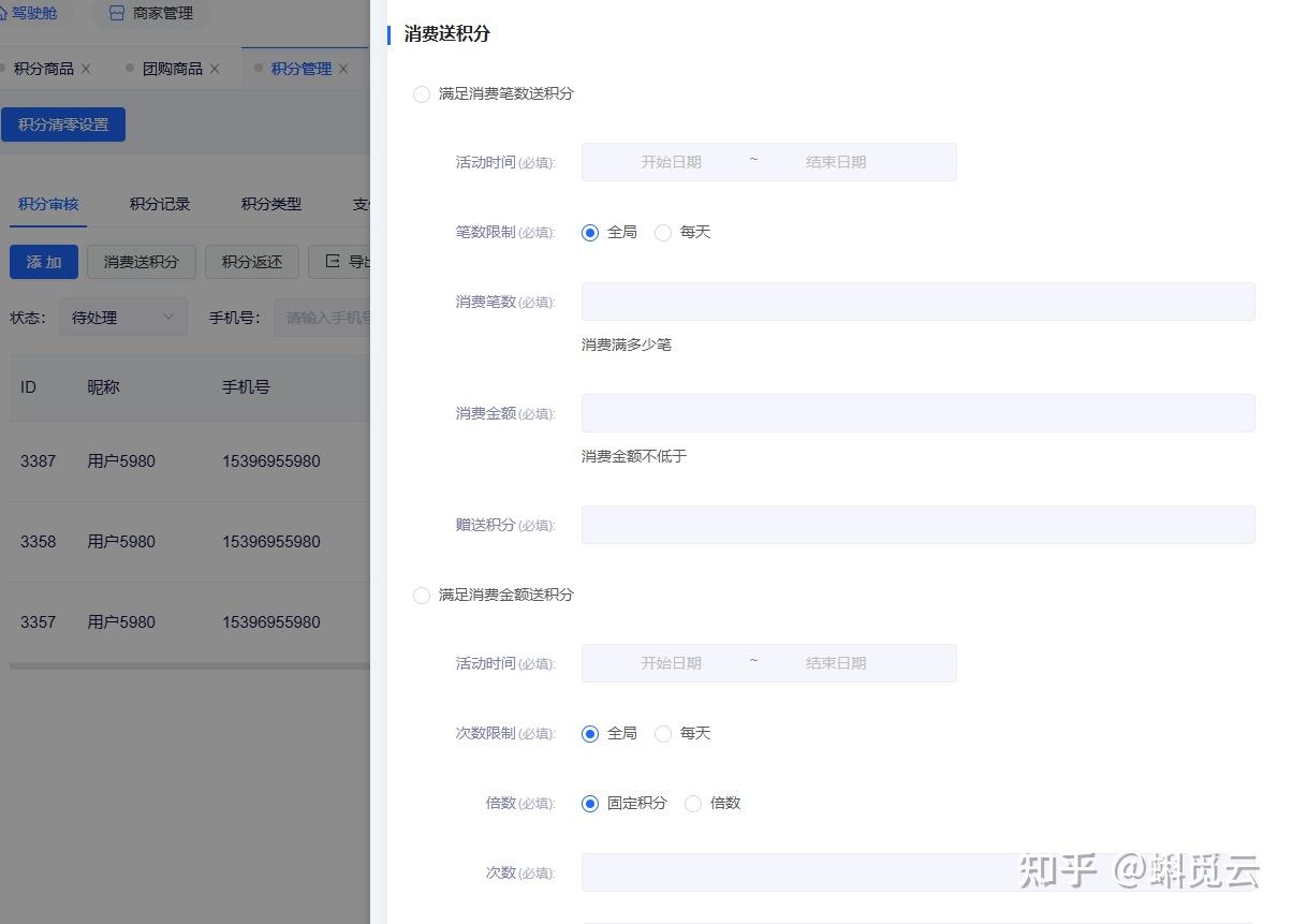 多重奖励模式:支持按消费金额(如满100元送10积分)或笔数(如消费3笔送50积分)设置规则